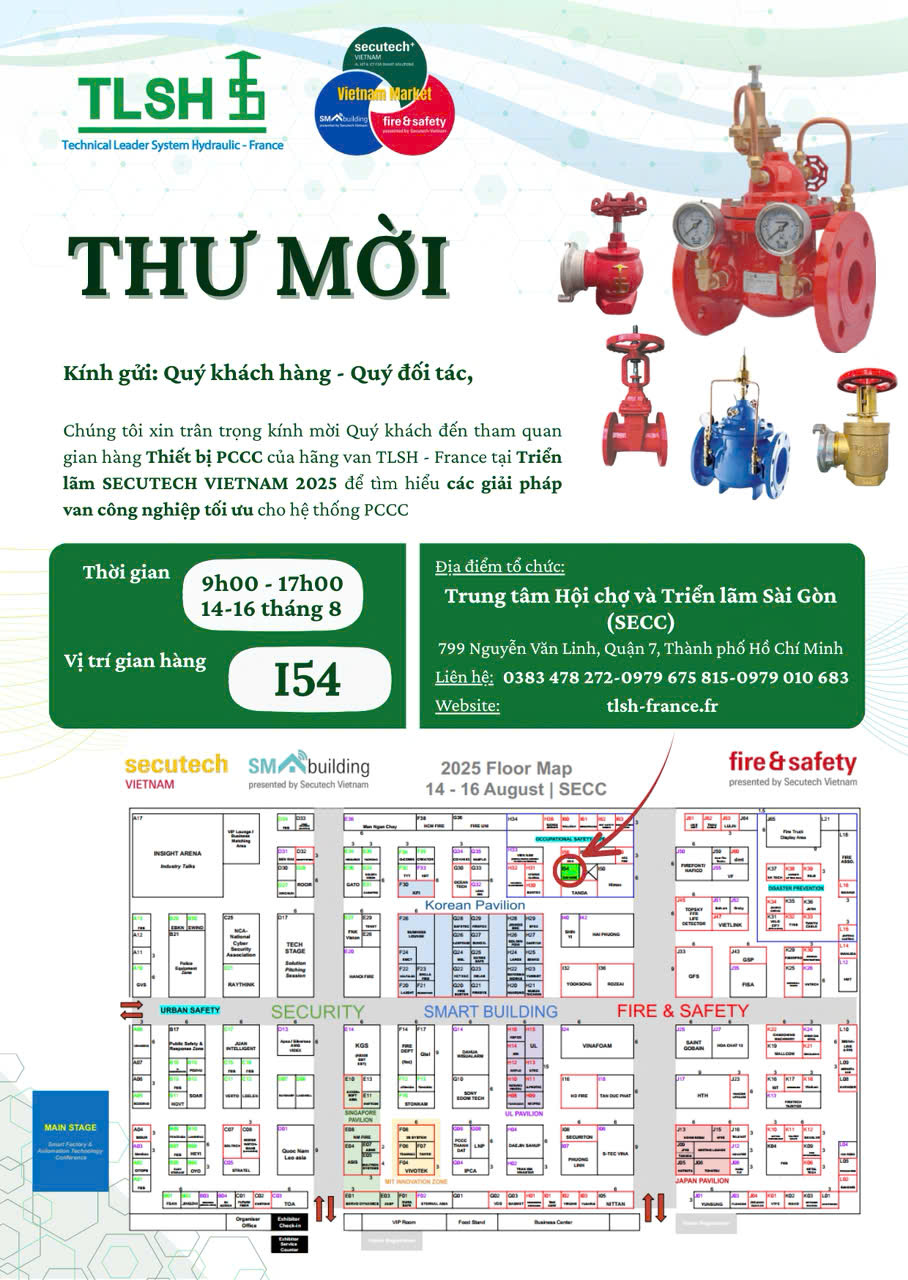 Thương hiệu van TLSH- Pháp kết hợp cùng Công ty Cổ phần Khoa học Công nghiệp Đại Nam xin trân trọng kính mời Quý Khách hàng, Quý Đối tác đến tham dự Triển lãm: Secutech Vietnam 2025 - Triễn lãm hàng đầu về PCCC, cứu nạn, cứu hộ.