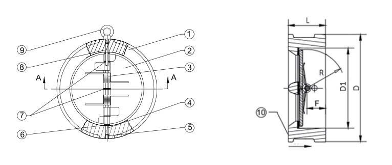 - Thiết kế wafer gọn gàng, dễ lắp đặt giữa các mặt bích tiêu chuẩn.